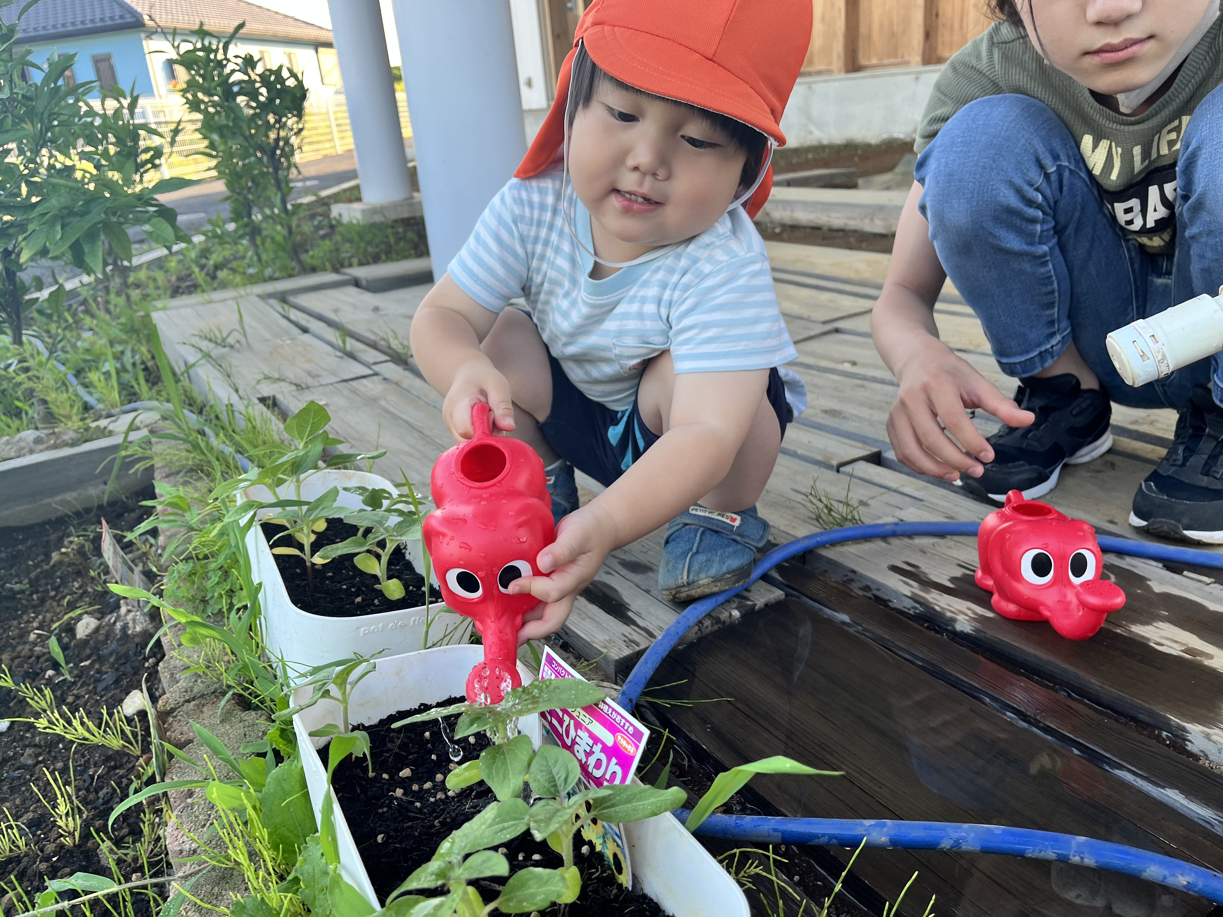 今後はより「見て、触って、食べて、感じる」五感を使った食育をしていきたいと思っています。園にテラスがあるのできゅうりや夏野菜などを育てて実際に収穫することをしたいと思っています。