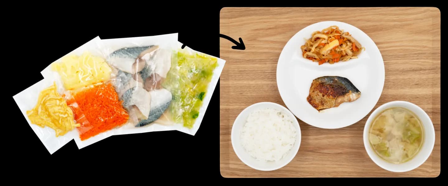 オリジナルのミールキットをお届けします。調理作業を効率化して、誰でもクオリティの高い給食を提供できるようになります。
