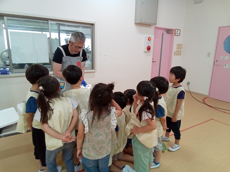 ・海なし県の我々にとってはとても新鮮で、本物の鯛の色形や内部を感じとり、作る人の大変さ(橋本さんがとてもカッコよく目に写ったようです)、そして命をいただく概念を植え付けるきっかけとなったような気がします。(5歳児クラス)