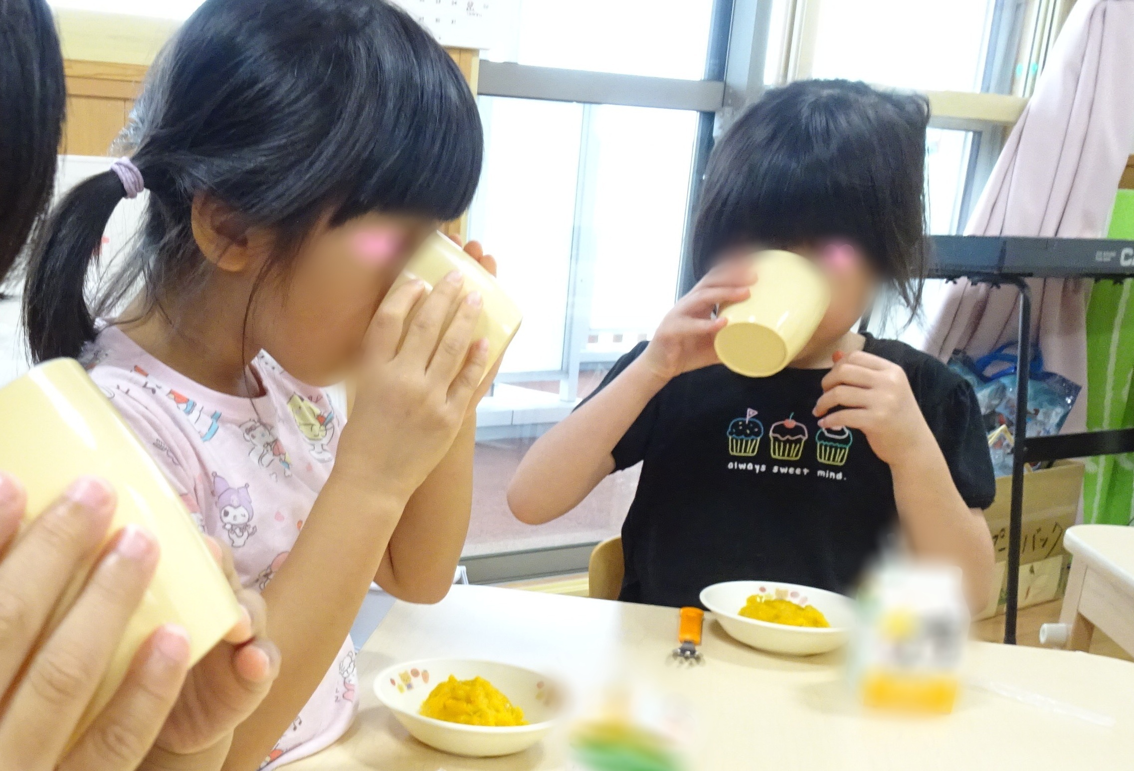 オンライン食育後には、保育園様にお届けした牛乳をみんなで観察した後、そのまま飲んだり、調理をしたりして美味しくいただきました。